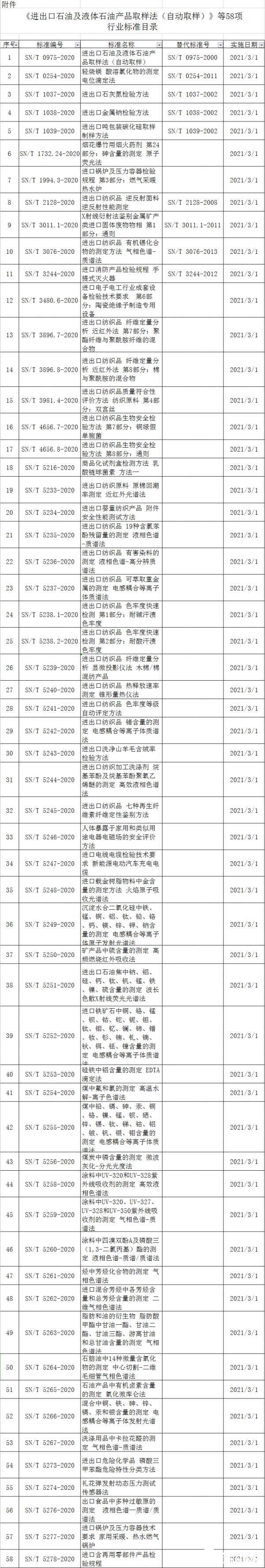 附件: 《進出口石油及液體石油產品取樣法(自動取樣)》等58項行業(yè)標準目錄.xls