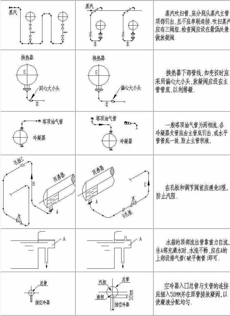 計中經(jīng)常由于設(shè)計人員的疏忽及經(jīng)驗不足,會造成管道布置不合理,操作檢修不便,外表不美觀的情況。為提高設(shè)計質(zhì)量,減少常識性錯誤的發(fā)生,本文為大家整理了配管設(shè)計中這些最常見的實例!