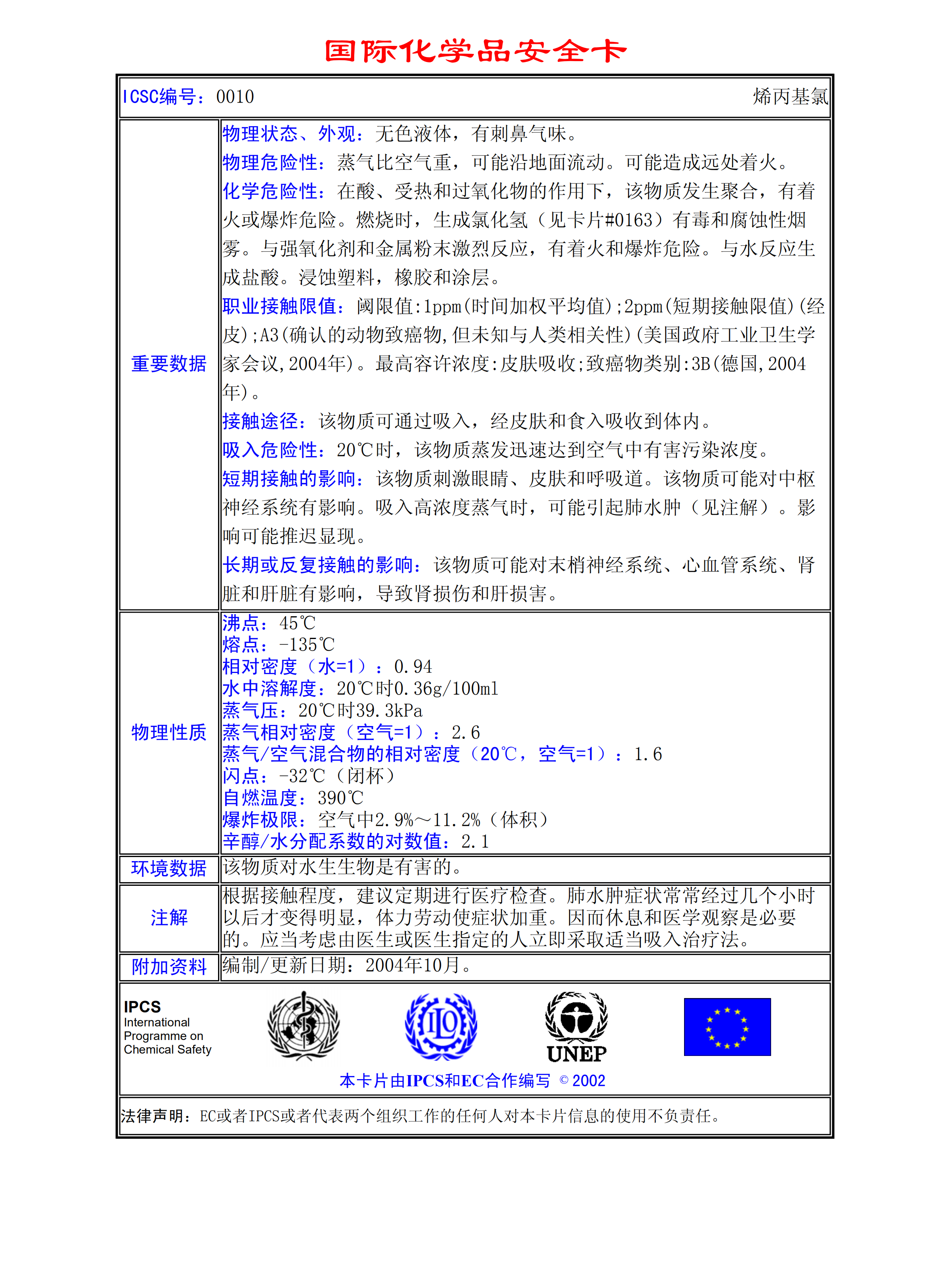 烯丙基氯MSDS