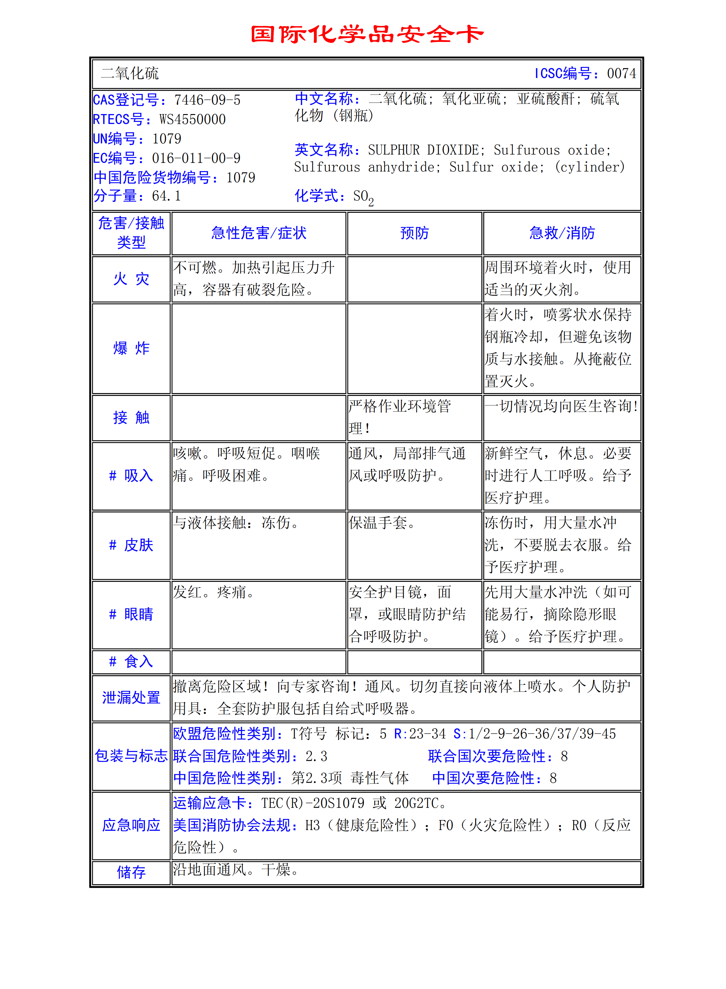 二氧化硫MSDS