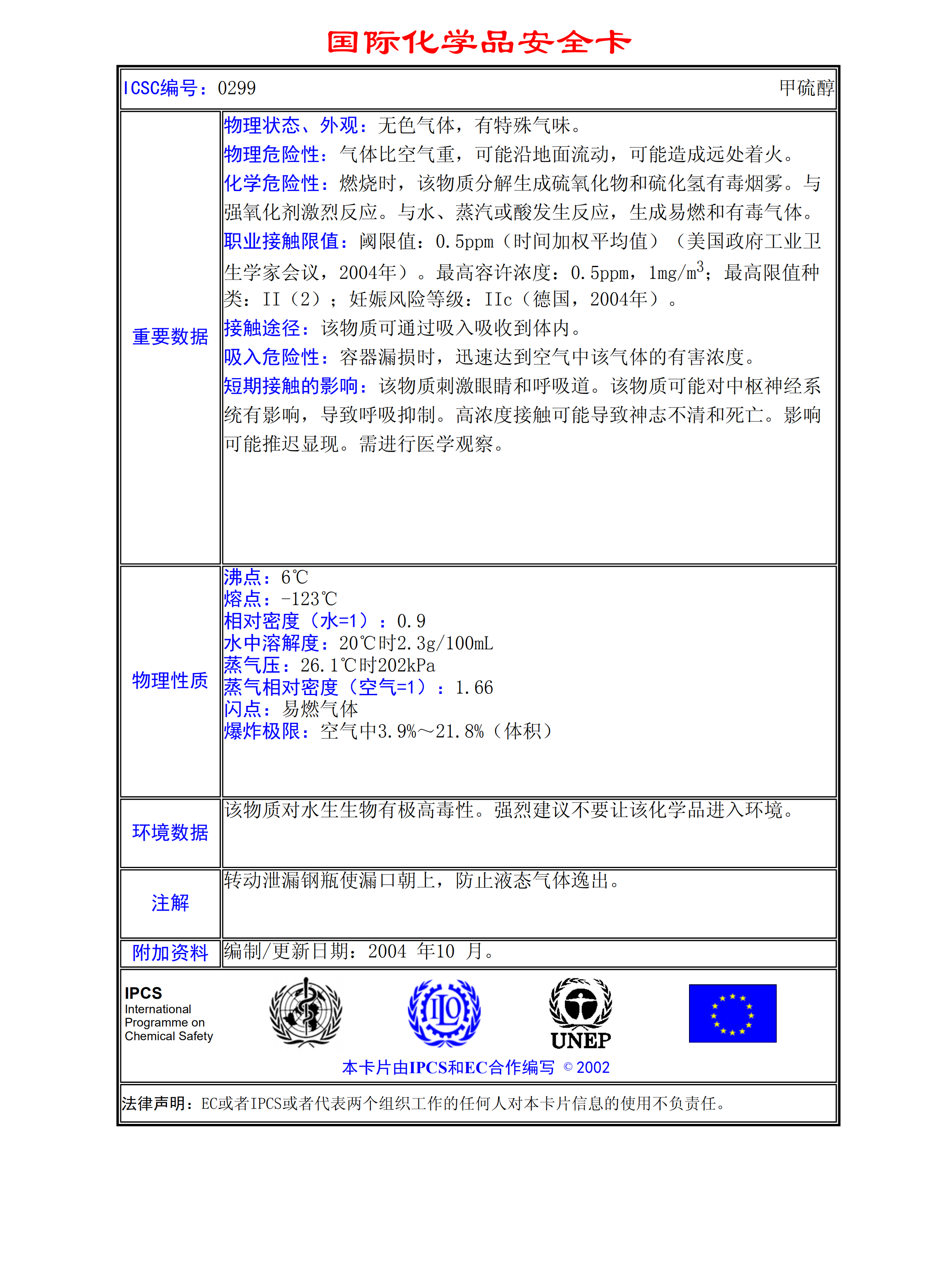 甲硫醇MSDS