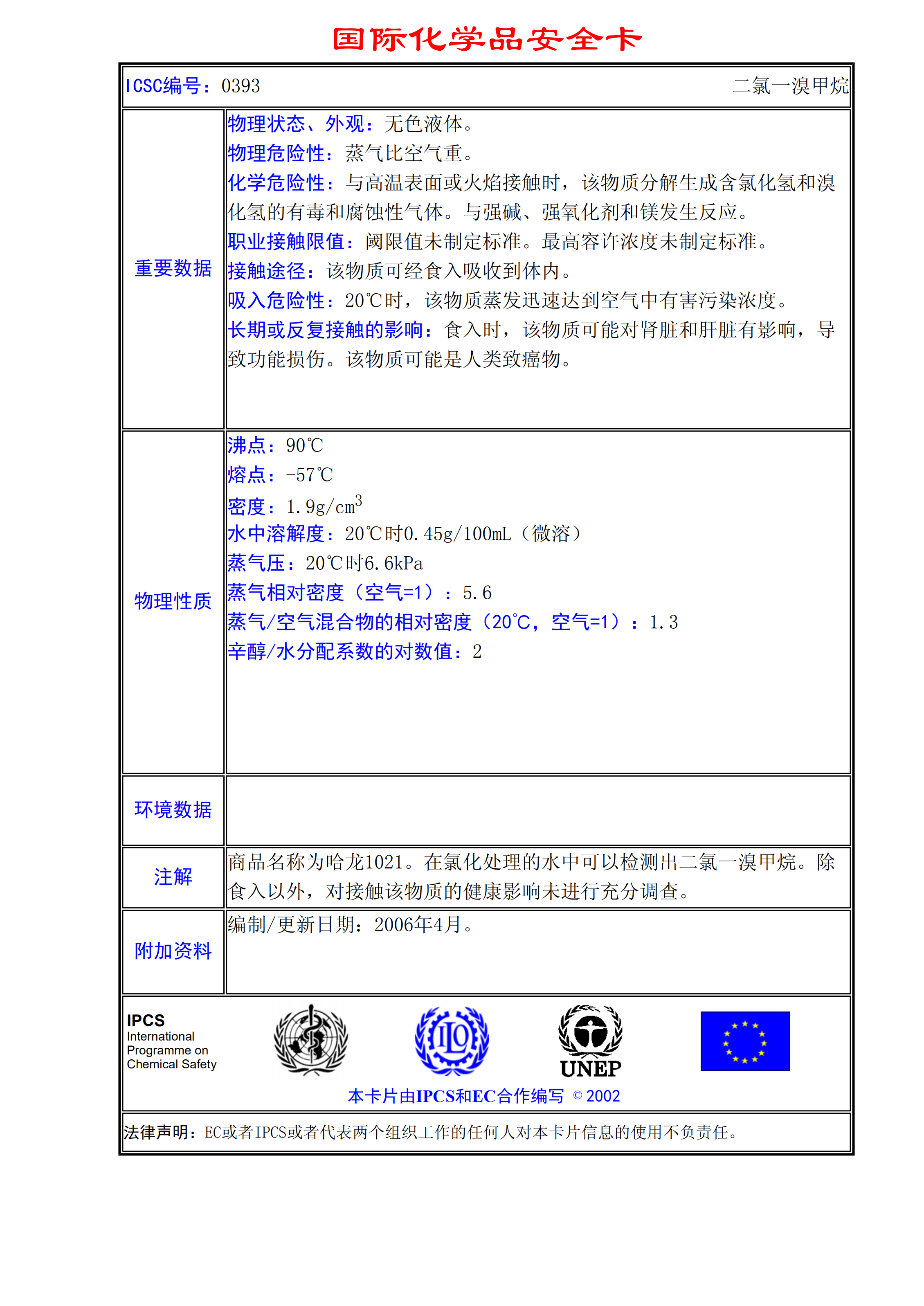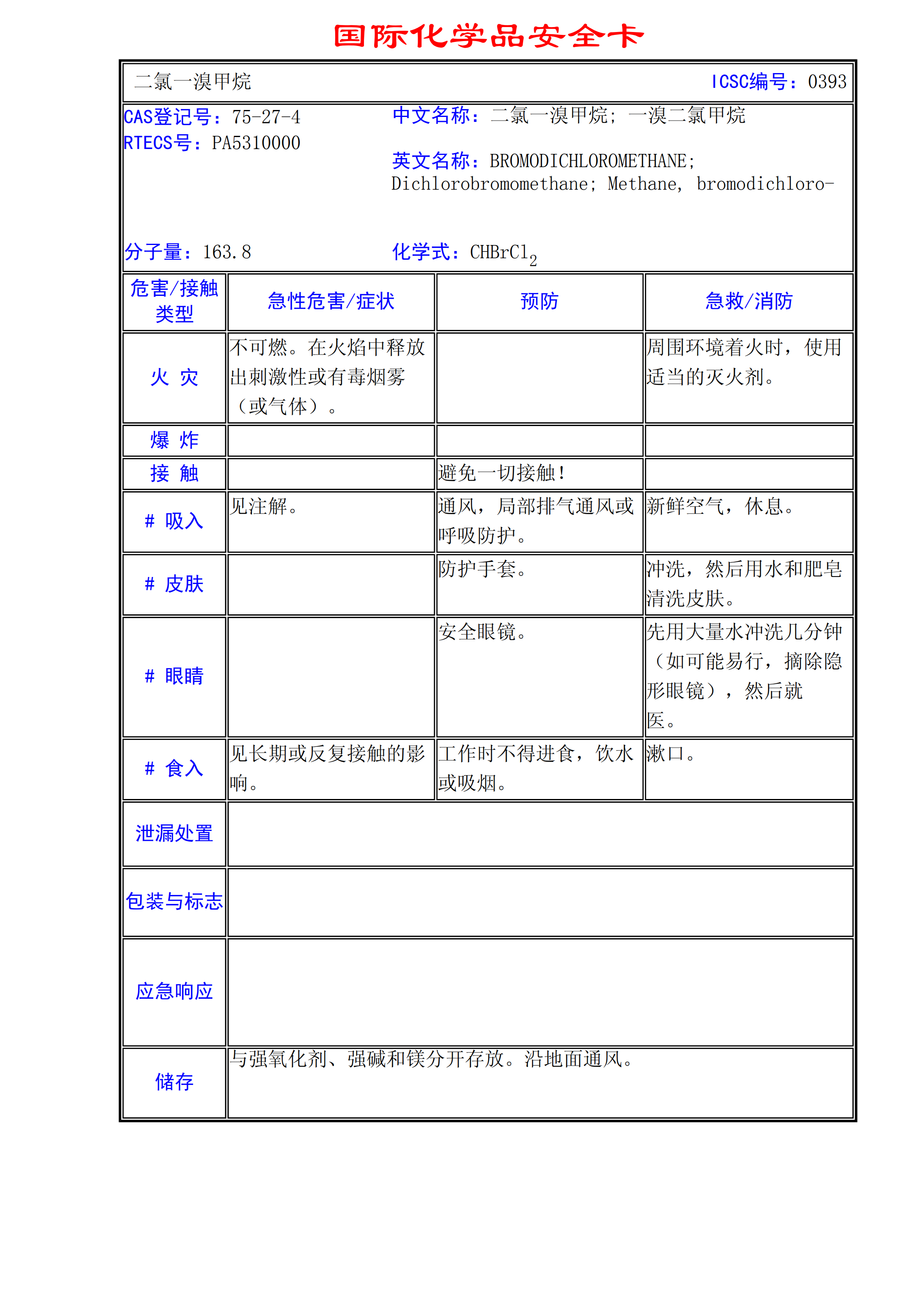 二氯一溴甲烷MSDS