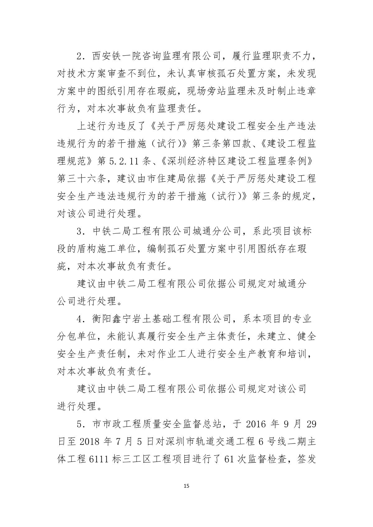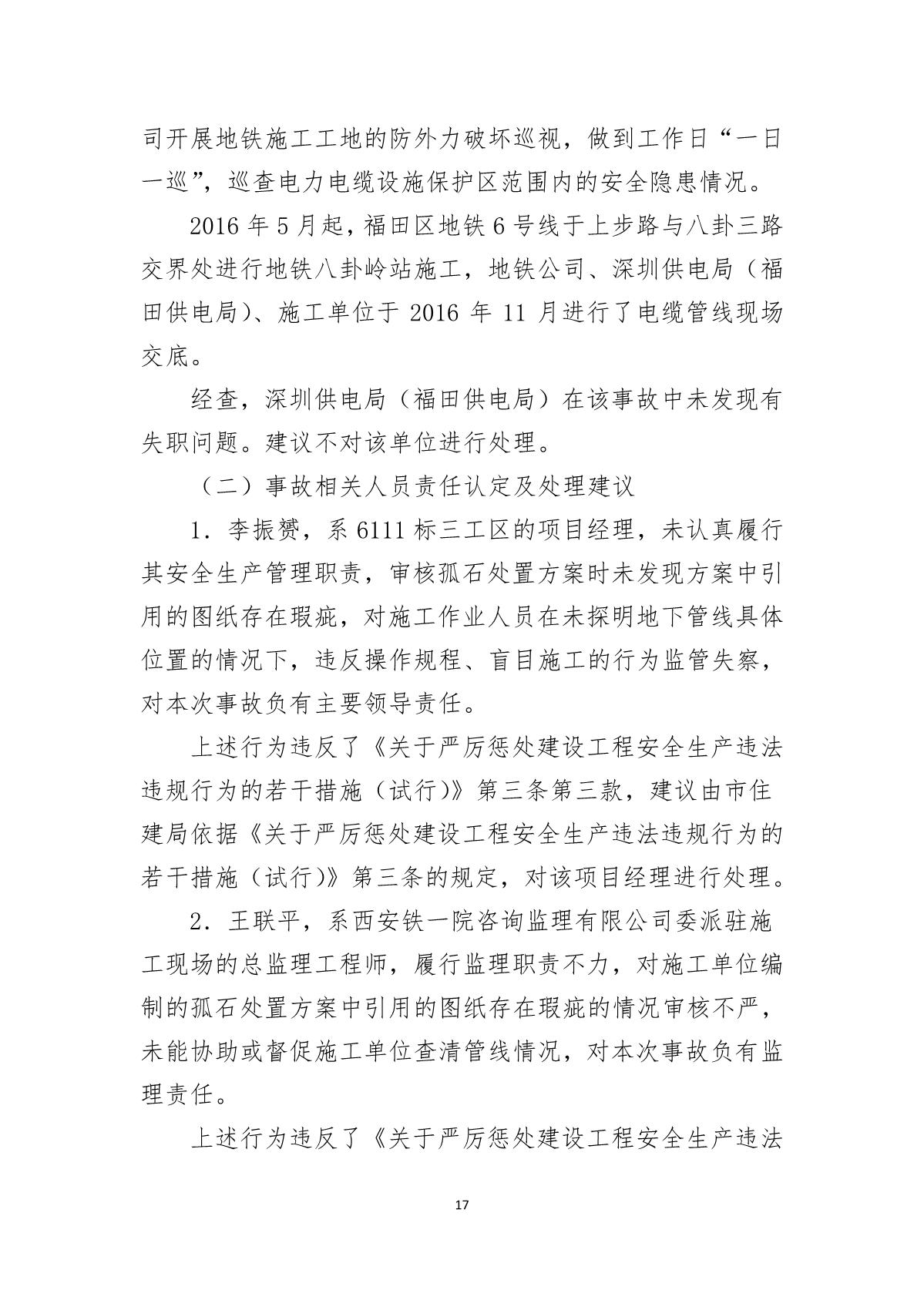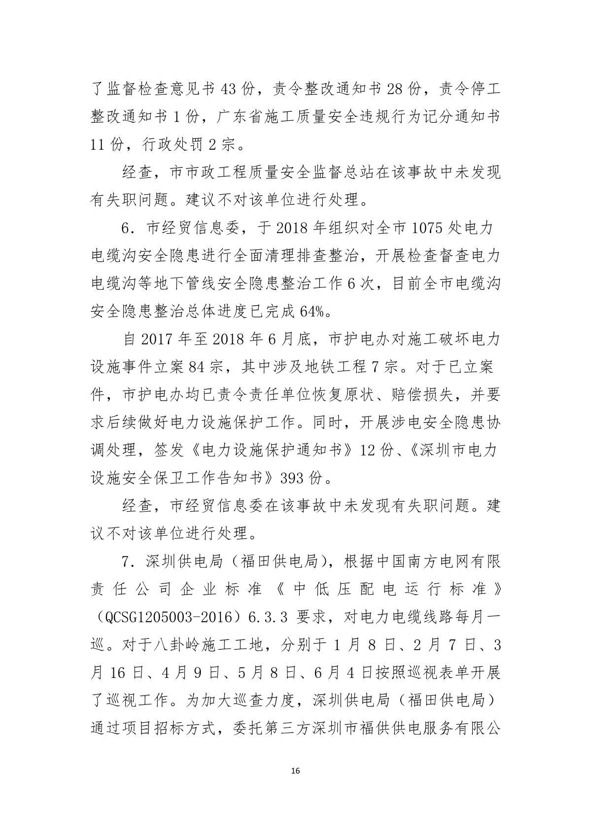 福田區(qū)人民政府關(guān)于深圳市城市軌道交通6號線二期主體工程6111標(biāo)“7.05”10kv電力電纜受損事故調(diào)查報告