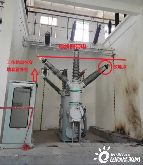 此時,110千伏II鳳省2開關(guān)處于冷備用狀態(tài),II鳳省2東刀閘母線側(cè)帶電。6月17日19時13分,安裝分公司工作負責人孫某和變電運維正值沈某前往II鳳省2開關(guān)間隔,違規(guī)使用鋼卷尺進行測量工作(非工作票所列作業(yè)內(nèi)容),在鋼卷尺靠近帶電的母線引下線過程中發(fā)生放電,導致孫某觸電死亡,沈某被嚴重燒傷。(事發(fā)發(fā)生現(xiàn)場見圖3)