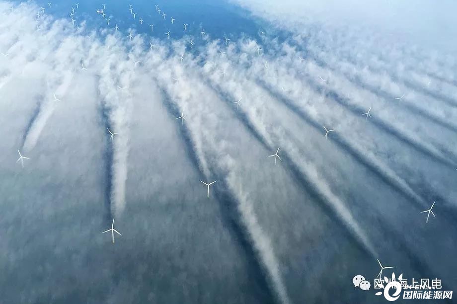 Horns Rev 1是全球第一座商業(yè)化規(guī)模的海上風場,最早由沃旭開發(fā),安裝了80臺2MW Vestas風機,葉輪直徑80米,輪轂高度80米,總裝機160MW。場址所在位置風功率密度398W / m2,最遠離岸距離18公里,最大水深14米。下圖這張顯示風機尾流影響的著名照片就來自于這座風場。