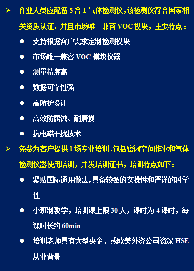 1)《授權(quán)氣體檢測(cè)員培訓(xùn)》+《密閉空間作業(yè)安全培訓(xùn)》